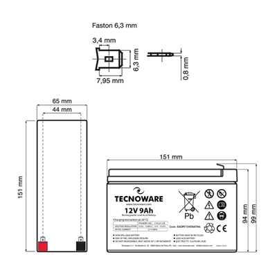 Modello: Power Battery 12V 9Ah (Long Life)